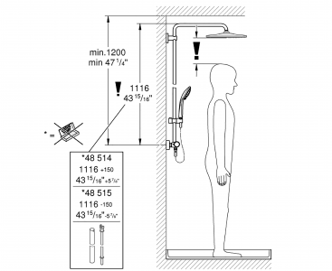 - Composition de la colonne: flexible de douche Isiflex 1,60 m, douche de tête Crometta S 240 1jet, douchette Crometta Vario