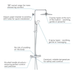 - Douchette à main Euphoria 110 avec trois jets : Pluie, Massage, SmartRain, et curseur ajustable en hauteur