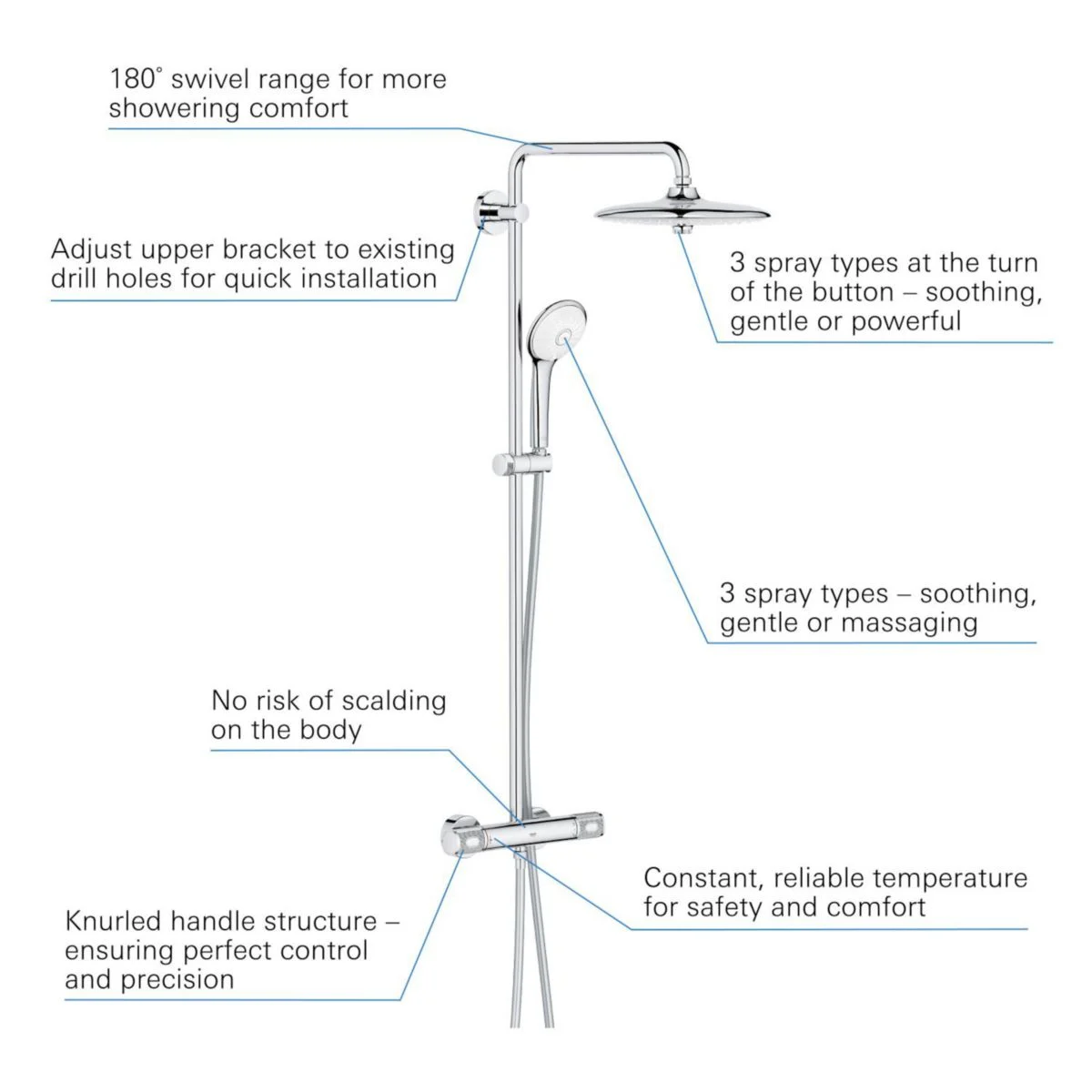 Colonne de douche Tempesta 250 Grohe avec mitigeur thermostatique – Chrome