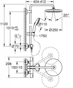 - Douche de tête : Ø250mm