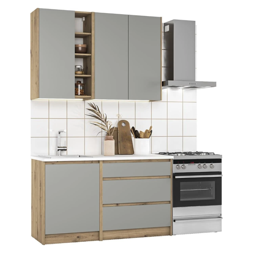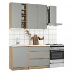 Ensemble de meubles de cuisine à assembler, gris et chêne Naturel Zlata 1,4 m