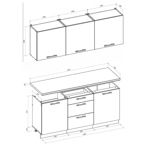Caractéristiques de l’ensemble de meubles de cuisine à assembler Billy 1,80m (KSETBILLY)