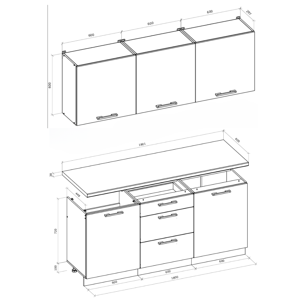 Caractéristiques de l’ensemble de meubles de cuisine à assembler Billy 1,80m (KSETBILLY)