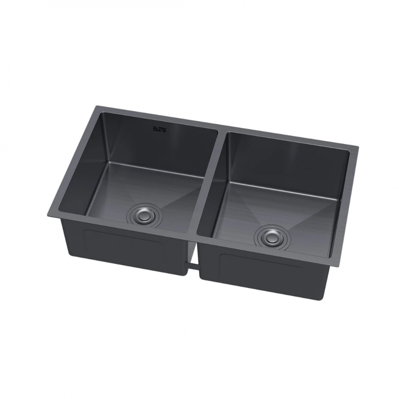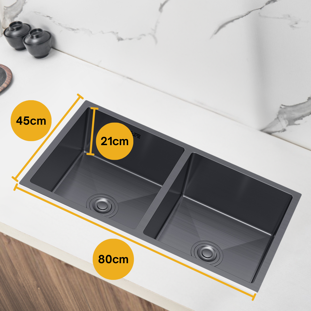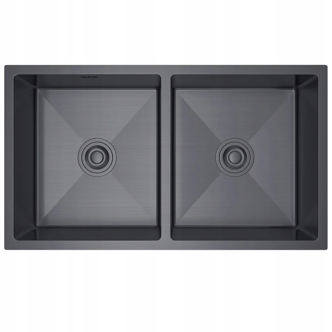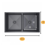 Évier en acier double bac 80x45cm couleur PVD Graphite noir