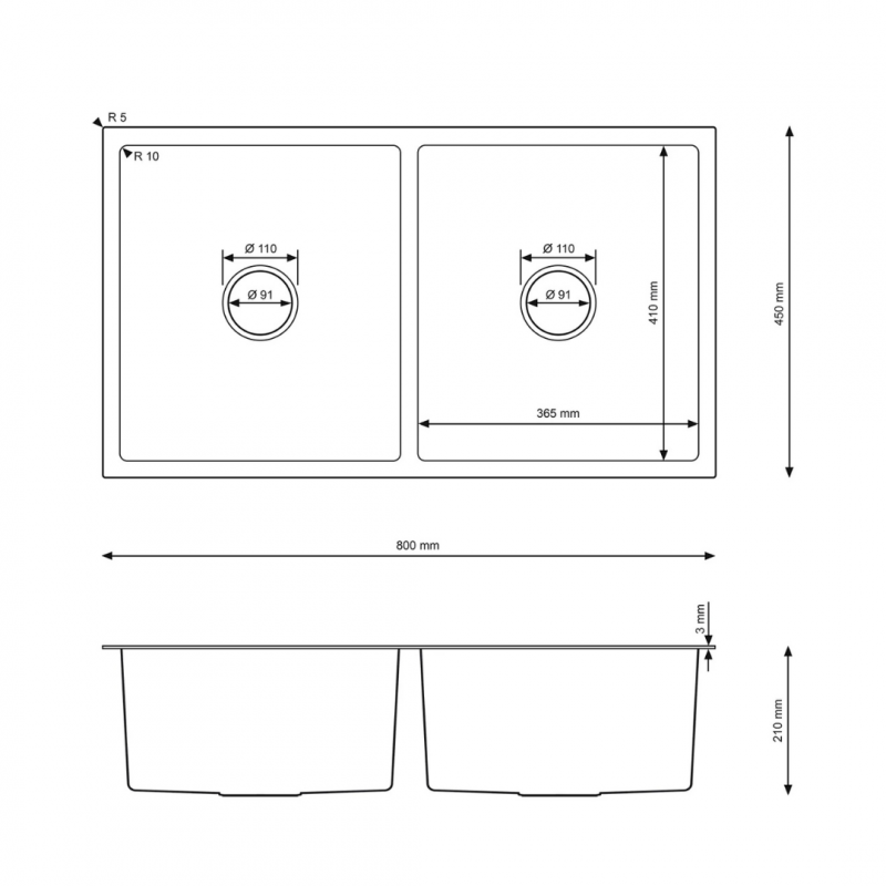 - Dimensions totales : 800 × 450 × 210 mm