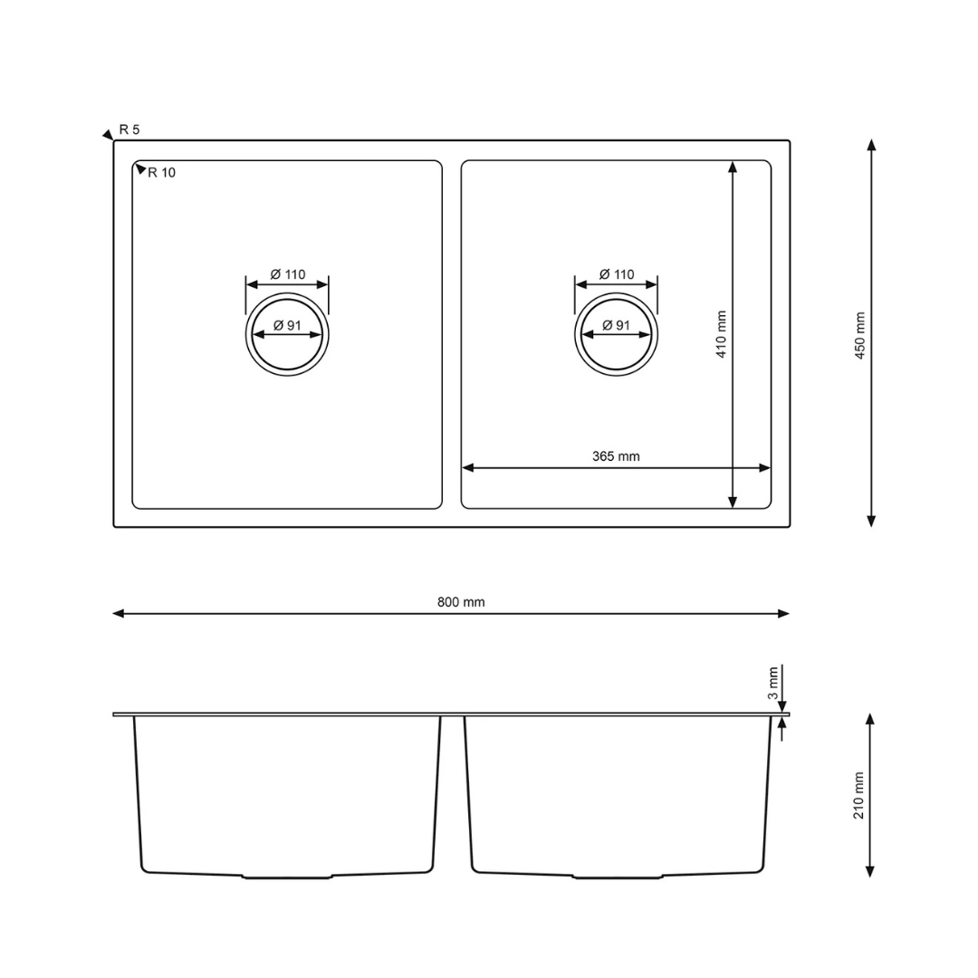 Modernisez votre cuisine avec cet évier en acier à deux cuves de 800 mm x 450 mm. Fabriqué en acier inoxydable de haute qualité avec une élégante finition graphite, cet évier excelle tant par sa fonctionnalité que par son esthétique. Ses cuves profondes (210 mm) offrent un espace généreux pour la vaisselle, la préparation des repas et le rangement des grandes casseroles.