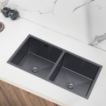 Alliant design moderne et usage pensé, cet évier double bac 80×45 cm en inox graphite PVD noir, vous offre deux cuves profondes (~210 mm), une finition haut de gamme sans trace et une isolation phonique intégrée. Parfait équilibre entre esthétisme contemporain et confort d’utilisation au quotidien.
