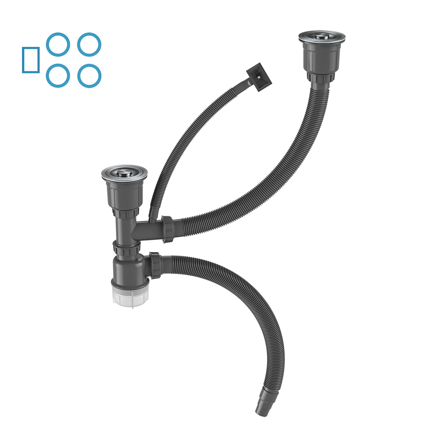 - Contenu du kit : évier, égouttoir, syphon, fixations.