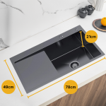 Évier inox en PVD graphite noir 78×49 cm avec égouttoir