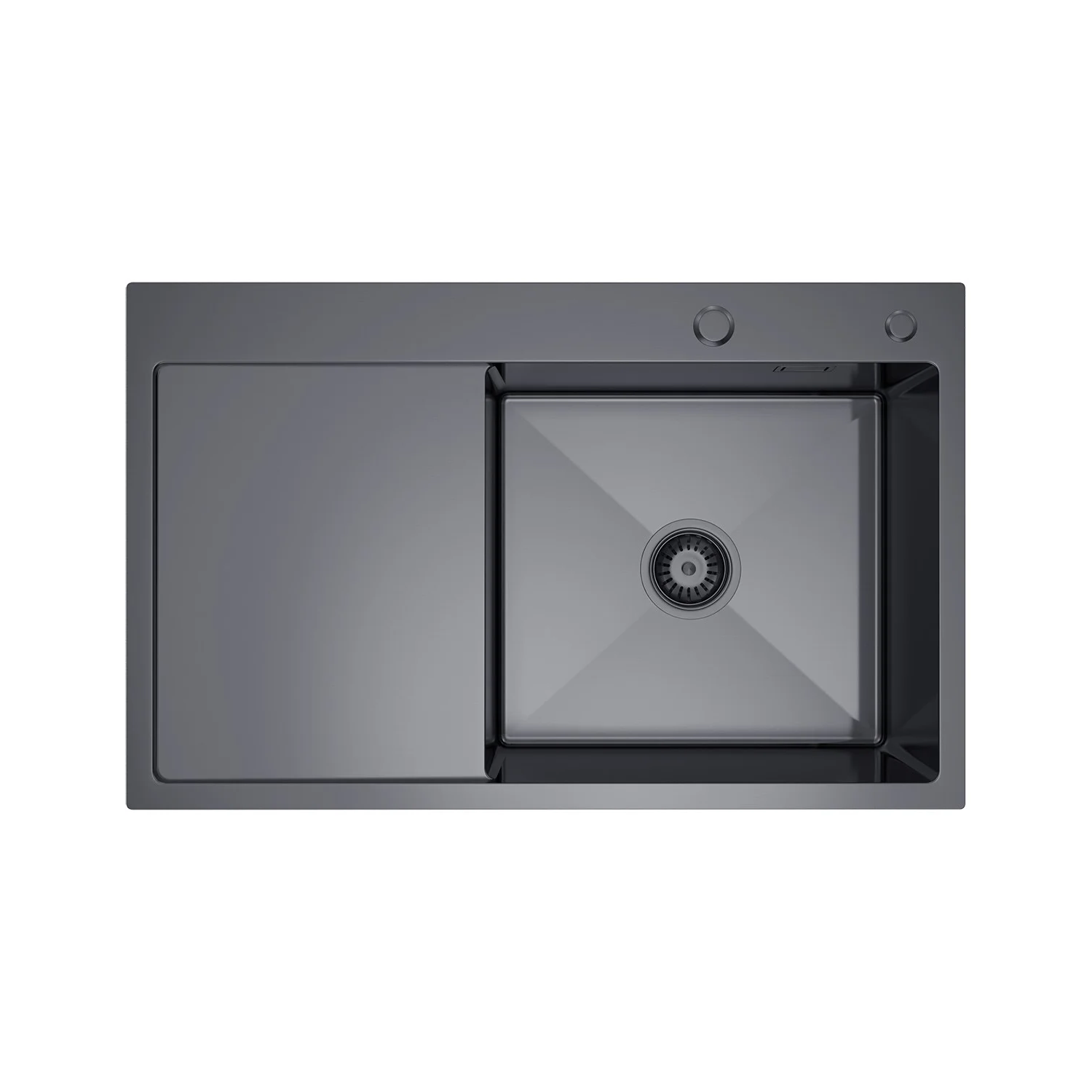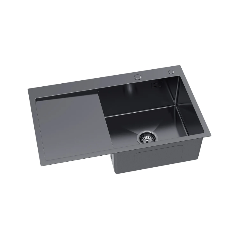 Évier en acier à une cuve avec égouttoir – 78x49cm en couleur PVD Graphite