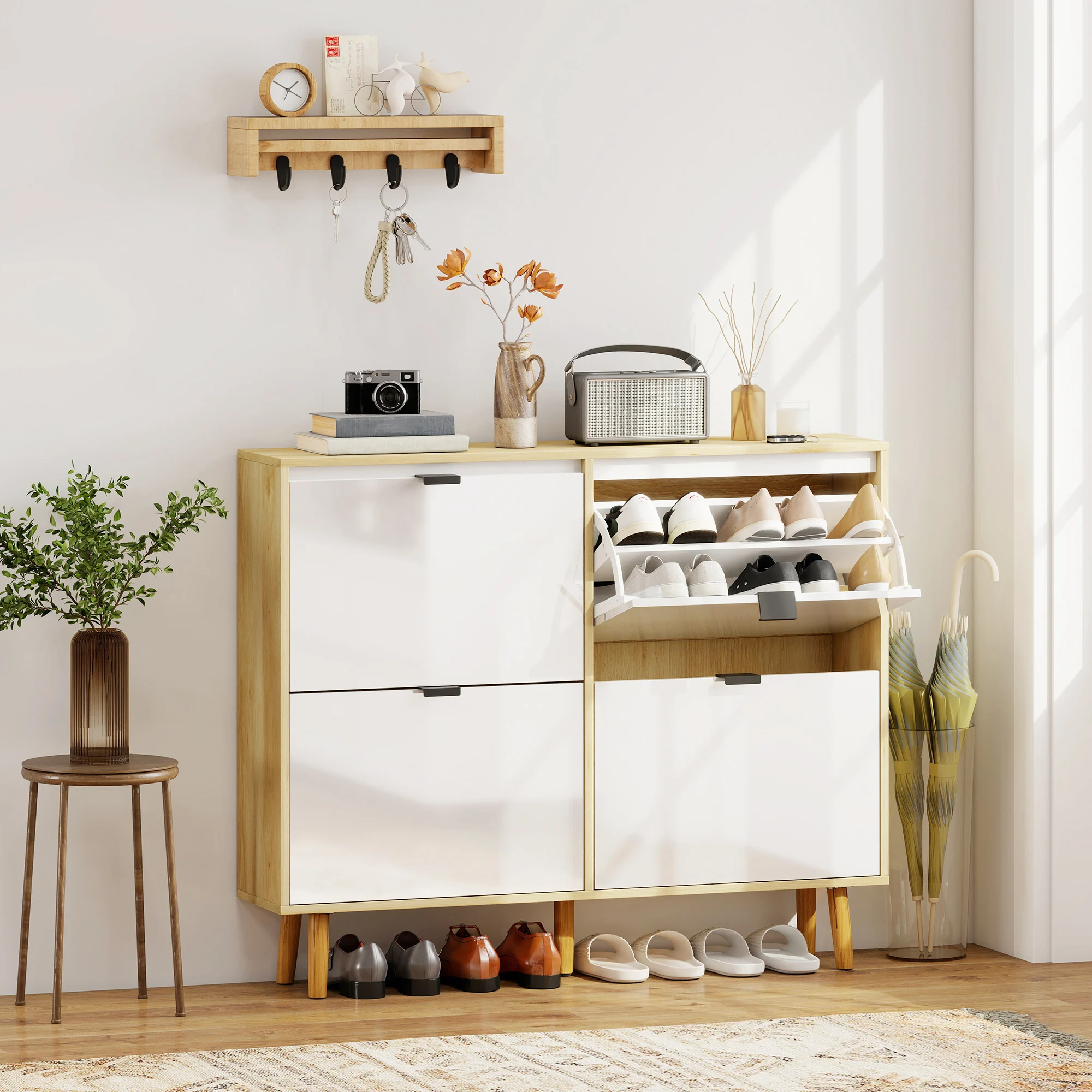 - Accès rapide et pratique : Grâce aux tiroirs rabattables, trouvez vos chaussures en un geste.
