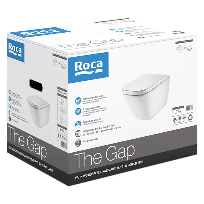 ROCA Pack WC suspendue sans bride avec abattant frein chute The Gap