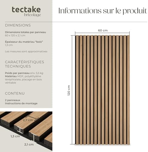 Apportez une touche design à votre intérieur avec ce lot de 2 panneaux acoustiques en MDF plaqué bois (chêne clair, foncé ou ébène). Idéal pour le salon, la chambre ou un bureau, chaque panneau offre une isolation phonique efficace et un look moderne. Installation simple (colle ou vis), découpe facile, extensibles sans joint visible. Parfaits pour une déco élégante et une ambiance sonore apaisée.