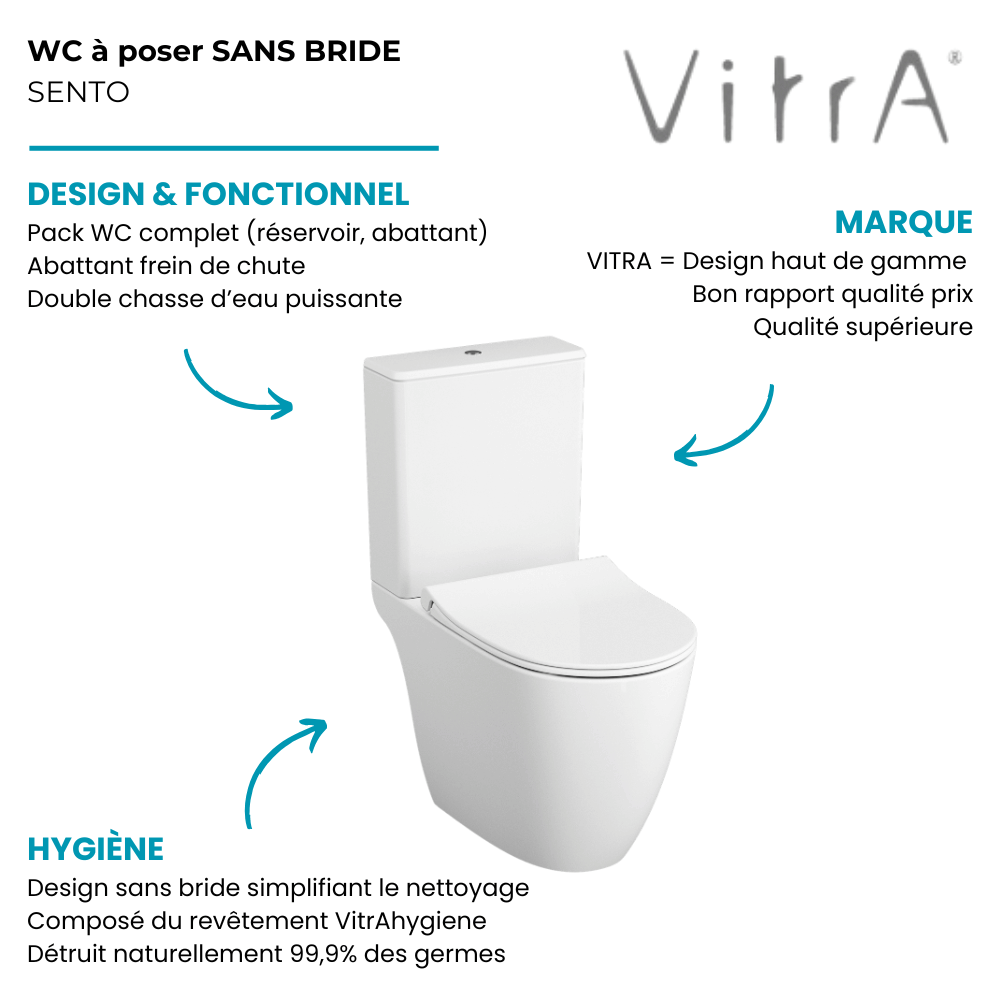 Les avantages du WC à poser compact sans bride VITRA Sento + abattant slim blanc